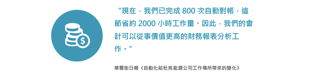 鄧白氏財務解決方案總經理Andrew Hausman表示:“可靠而全面的資料是成功實現自動化的核心。在分析和洞察的推動下,自動化不僅可以降低營運成本和提高效率,而且有助於整個公司開闢新的增長途徑。”
