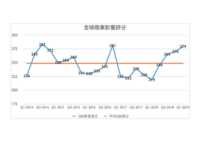 本期鄧白氏2019年第一季的全球商業影響評分顯示,企業面臨的風險已經連續4個季度惡化,創下了歷史第二高位,而歷史最高發生在2018年第一季。2019年第一季的得分突顯出,如無意外,儘管全球經濟正在從2008-2009年的衰退中復甦,企業決策者仍需在全球經濟放緩之前持續、謹慎地關注全球商業環境。同時,與貿易戰、政治、經濟發展、新技術以及氣候變化相關的風險,在地域上呈現出分散化和多樣化的特點,這將導致商業環境越來越具有挑戰性。
